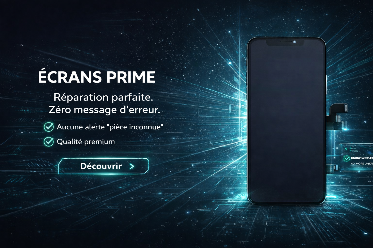 Nos pièces OEM assurent une réparation durable et professionnelle, que ce soit pour un écran, une batterie, une nappe de charge, un châssis ou une vitre arrière...